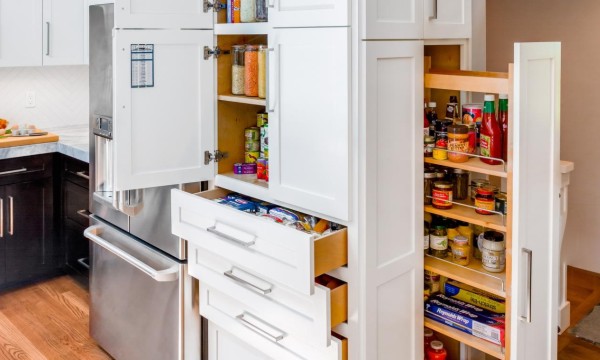 Velmi užitečným pomocníkem do kuchyňských skříněk jsou potravinové skříně. Většinou se jedná o vnitřní drátěný program ve formě nejrůznější výsuvů apod, který vám pohodlně zpřístupní i hůře dostupná místa skříněk, jako jsou skříňky v roh kuchyně, vysoko umístěné zásuvky apod.