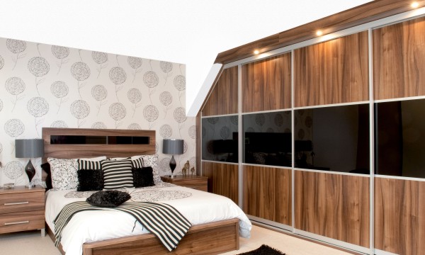 Šikmé vestavěné skříně doporučujeme do půdních a podkrovních místností. Uspořádání zkosených vestavěných skříní je klasické, jen je nutné přihlédnout ke zkosení skříně. Pro posuv dveří používáme tzv. podpůrné kolejnice.